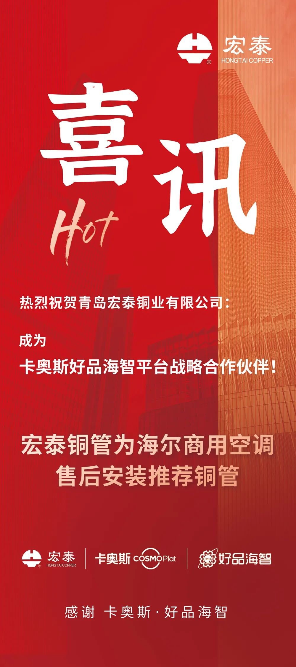 喜訊!宏泰銅管成為海爾商用空調售后安裝推薦銅管